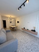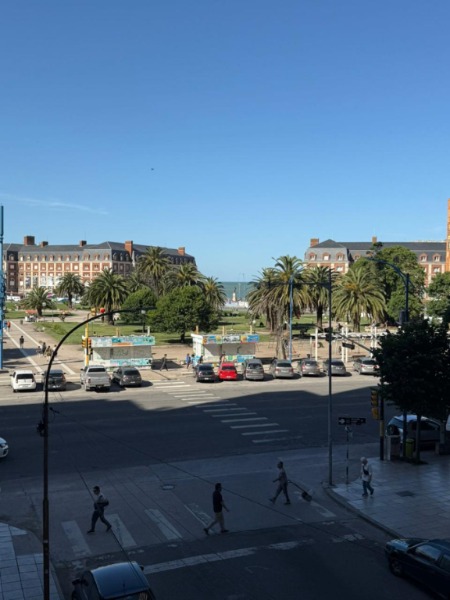 Amplio y luminoso living comedor con balcón saliente a la calle, ofreciendo vista lateral a la plaza y al mar.