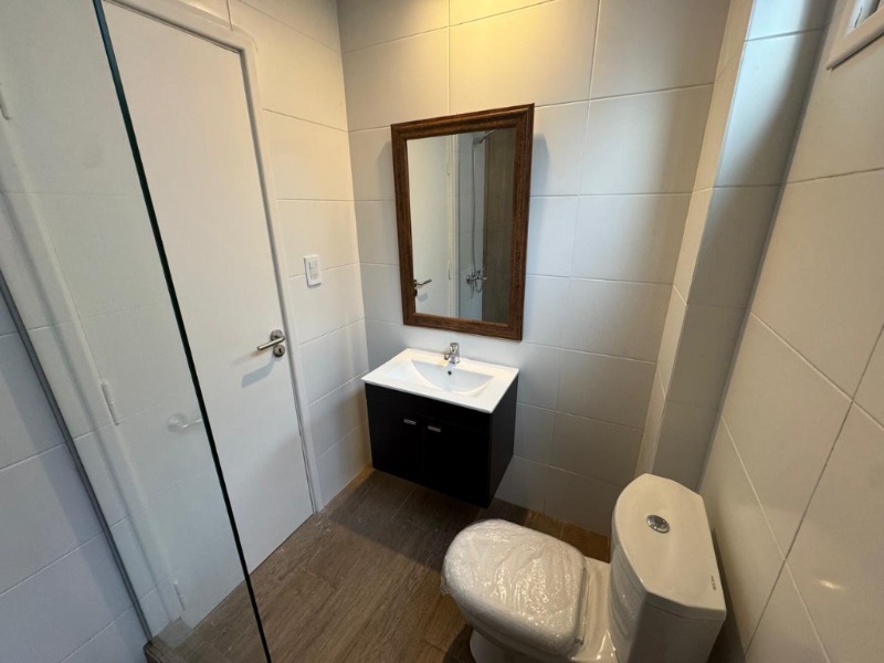 Baño con ducha y mampara de vidrio, amplio placard, calefacción por tiro balanceado.